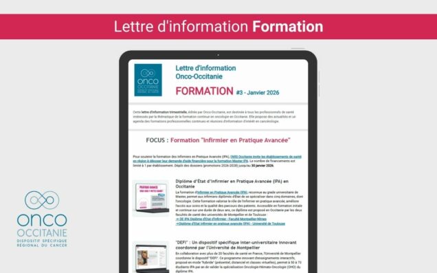 Onco-Occitanie publie le 3e numéro de sa lettre d’information trimestrielle « Formation », destinée à tous les professionnels de santé intéressés par la thématique de la formation continue en oncologie en Occitanie.