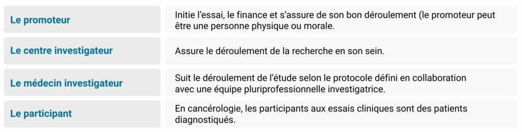 Les acteurs de la Recherche Clinique sont :